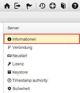6.) Im rechten Bereich im Abschnitt „Server" finden Sie die Aktion Informationen: