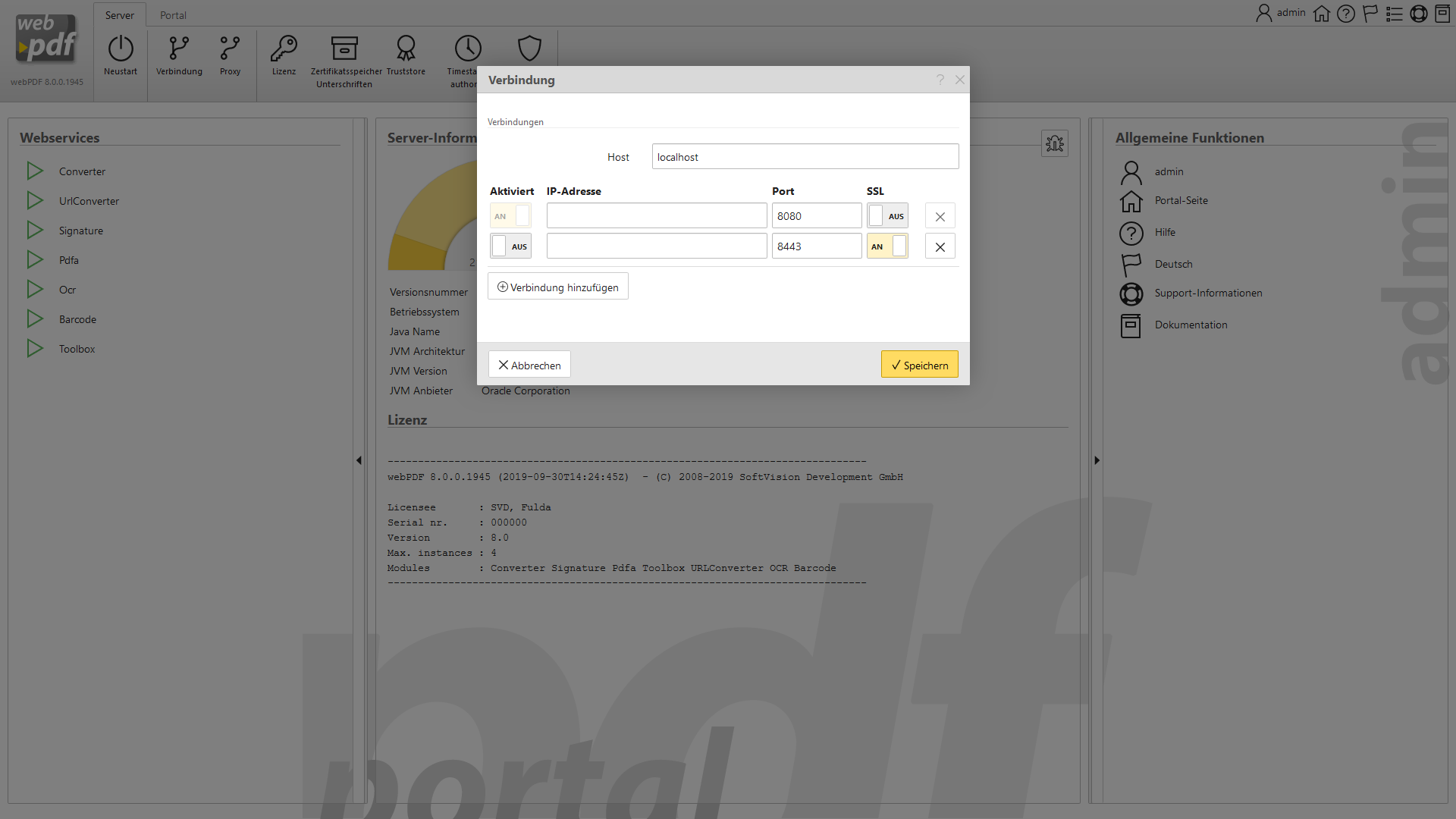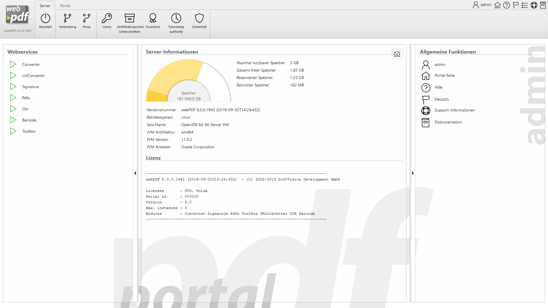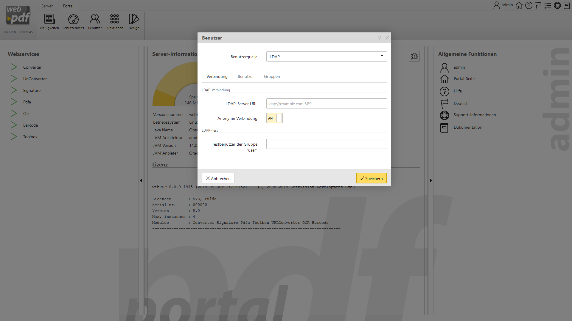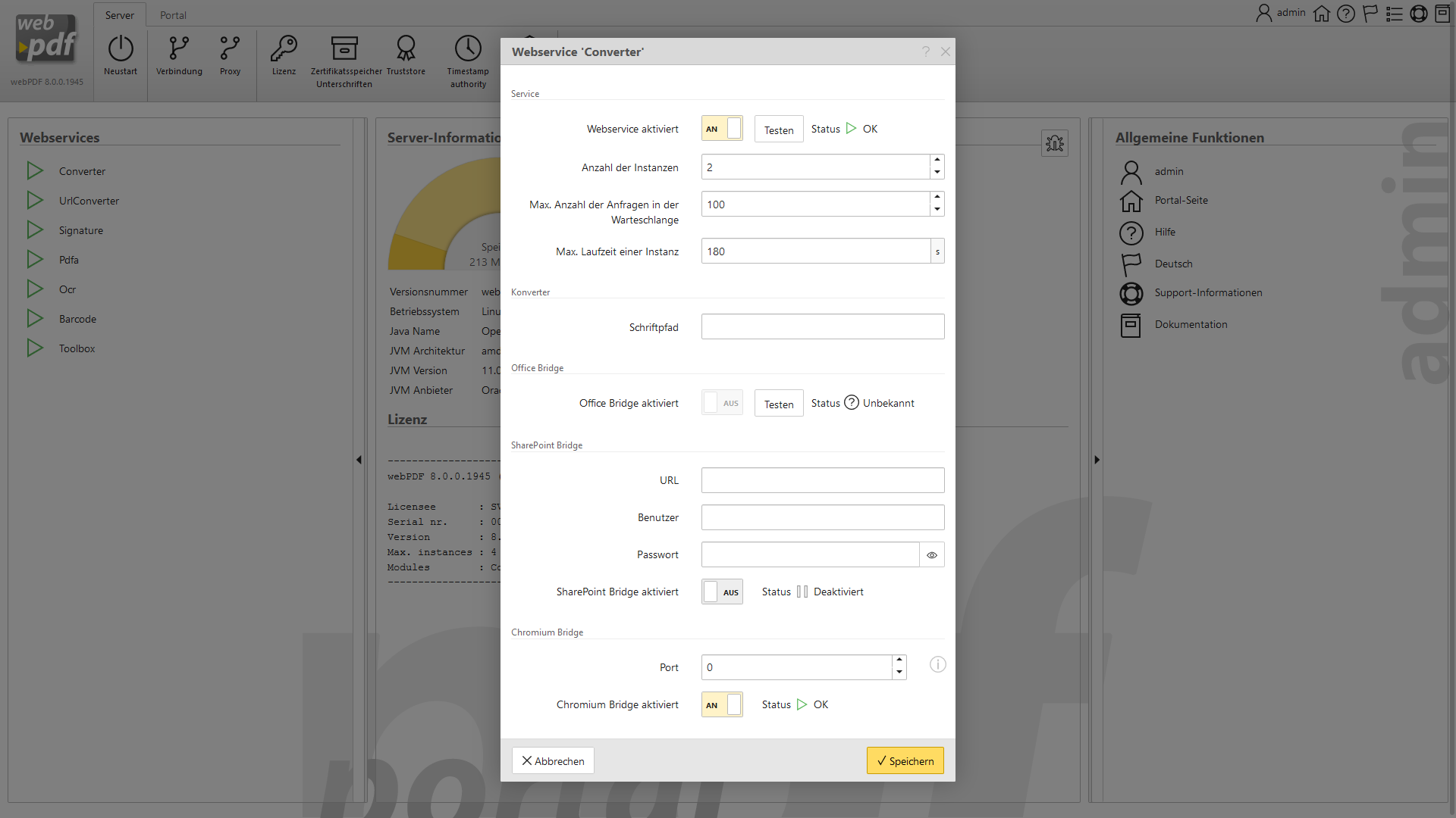 Screenhots zu einigen Einstellungsmöglichkeiten im Administrationsbereich: