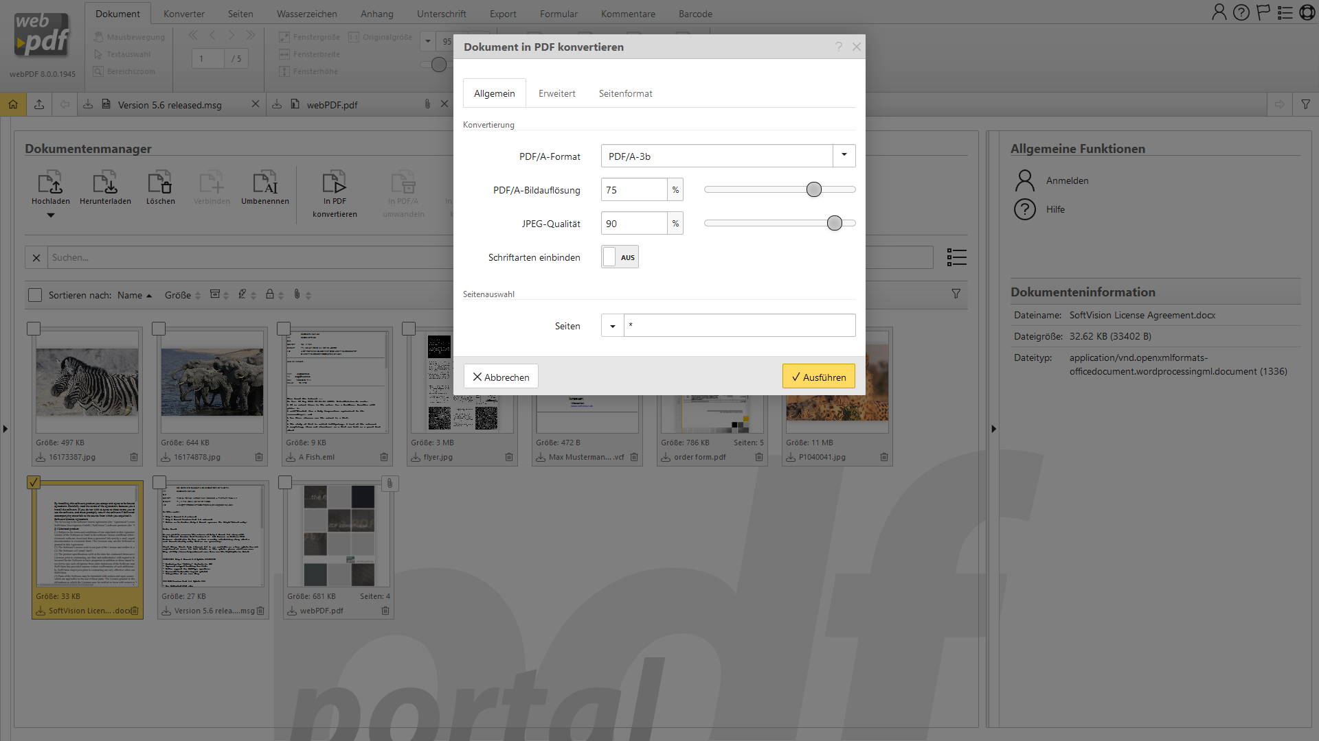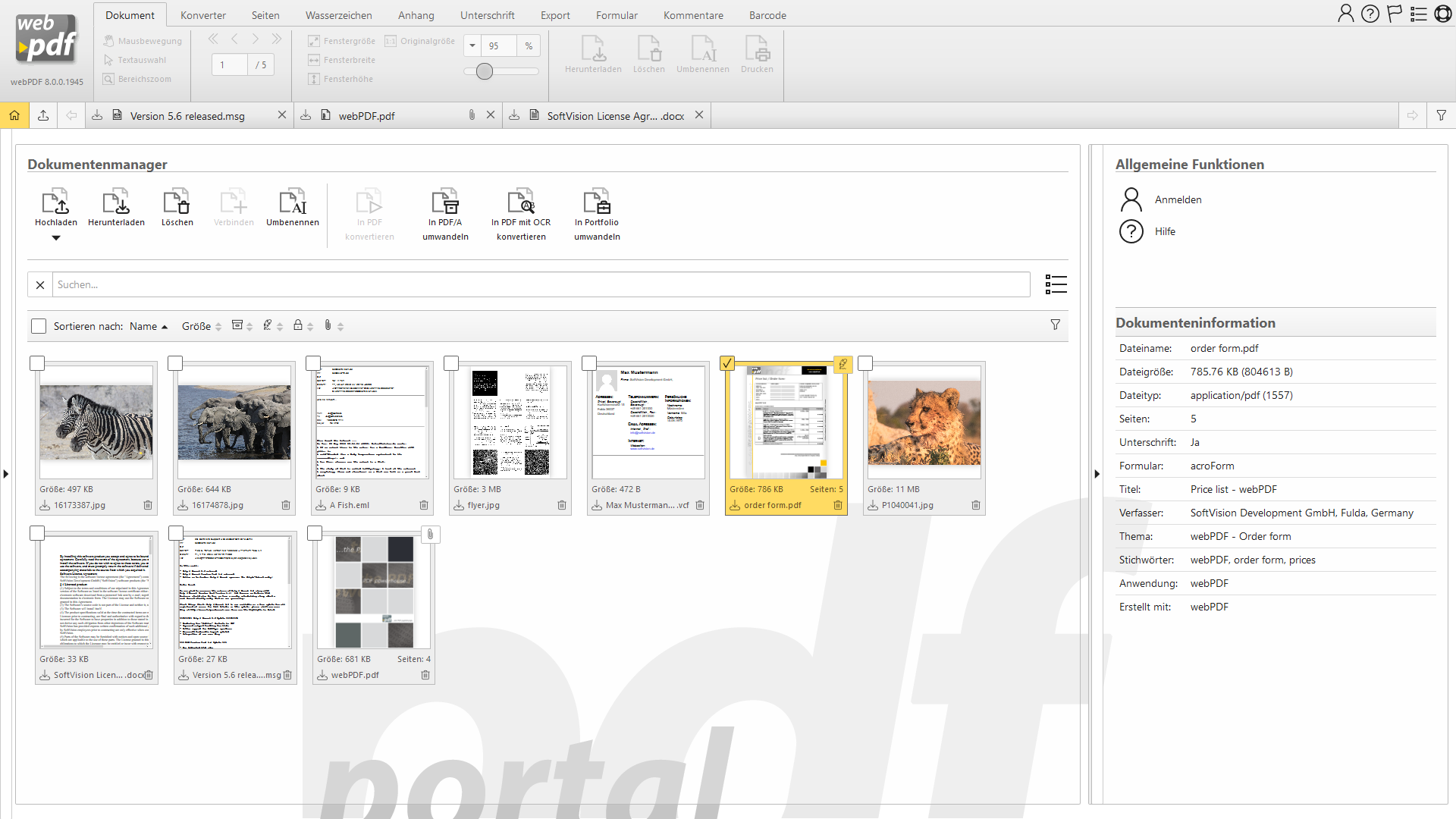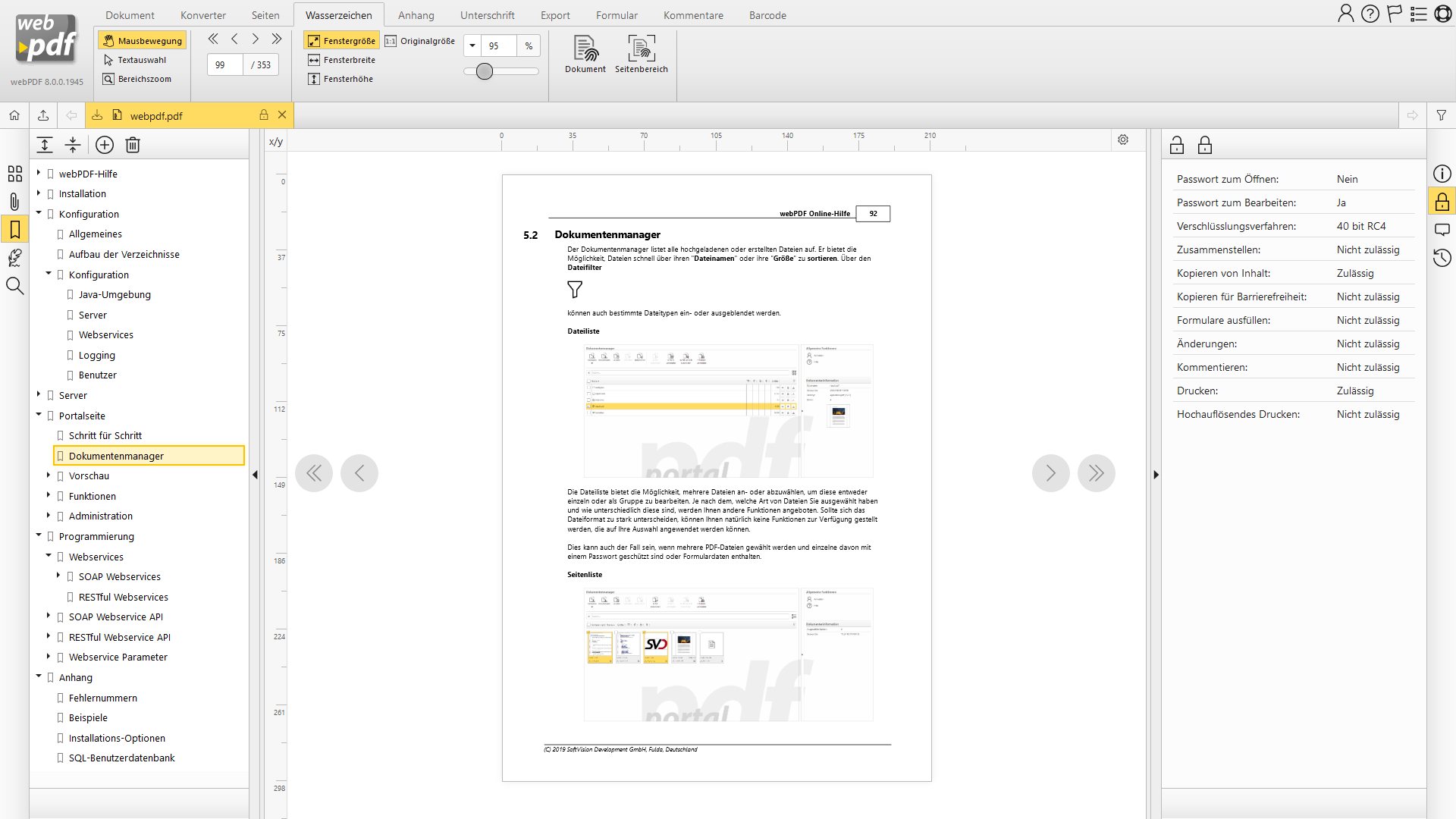 Auf dieser Seite finden Sie einige Screenshots zu webPDF: