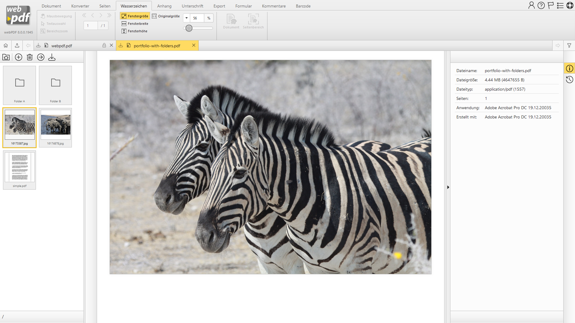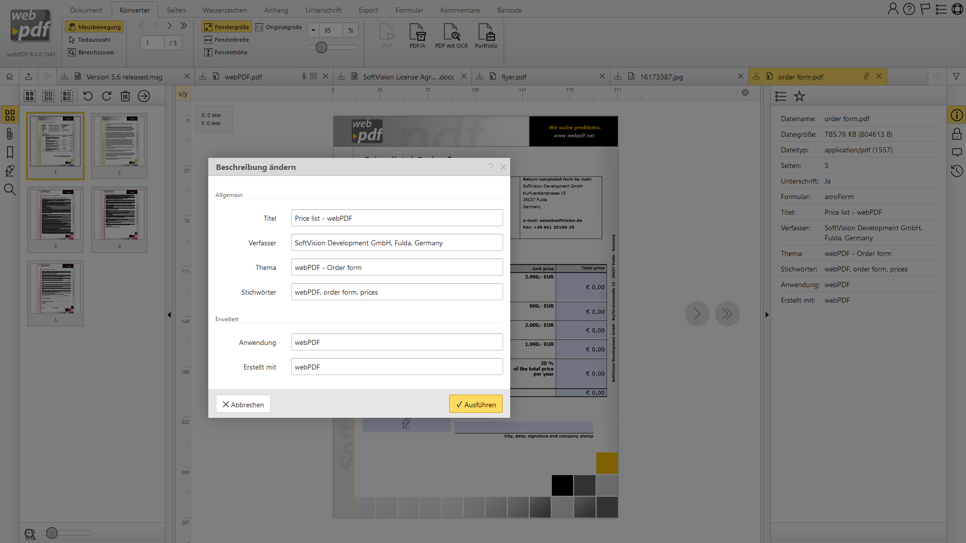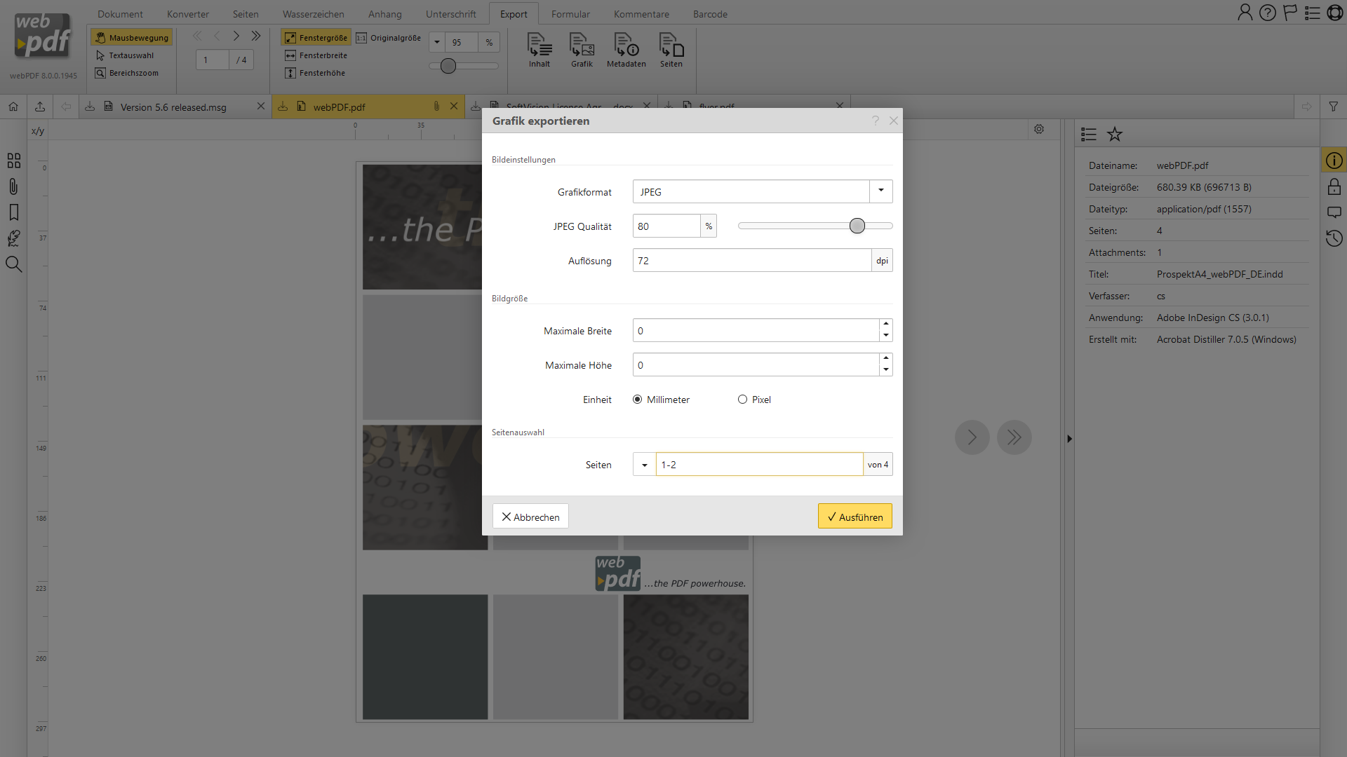 Auf dieser Seite finden Sie einige Screenshots zu webPDF: