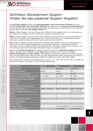 Damit Sie auch nach der Entscheidung für unsere Produkte optimal unterstützt werden, bieten wir Ihnen drei kostenpflichtige Support-Stufen an. Wählen Sie die zu Ihren Bedürfnissen und Ihrer Lizenzierung passende Support-Stufe "Bronze", "Silber" oder "Gold" bis spätestens 30 Tage nach dem Lizenzkauf. Bei uns bekommen Sie genau den Support, den Sie auch wirklich brauchen.