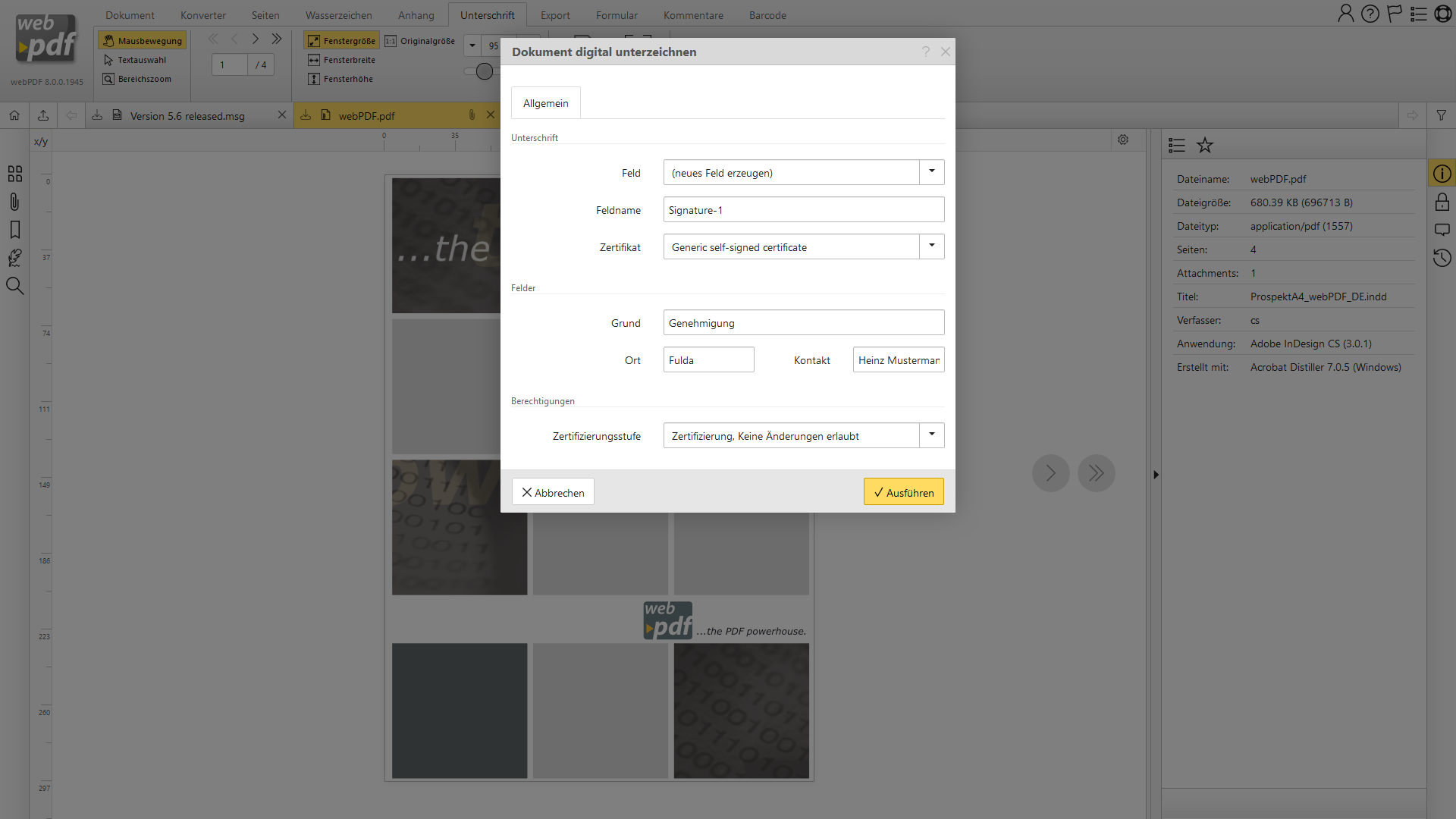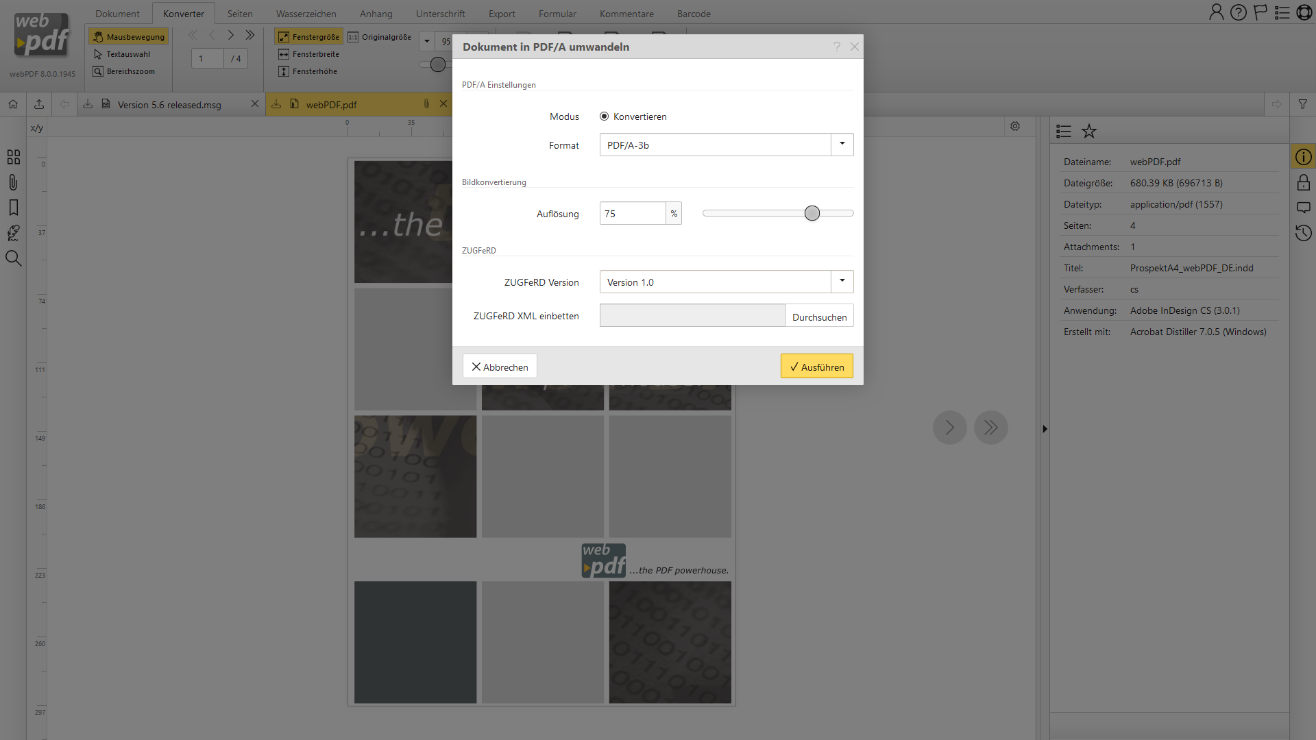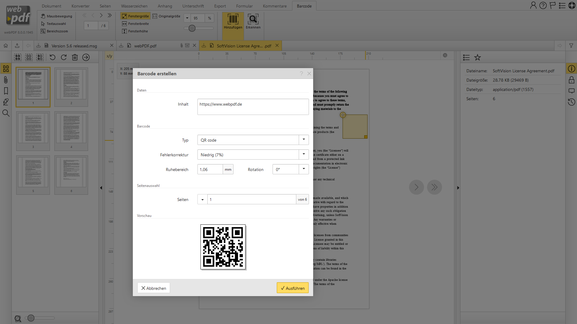 Auf dieser Seite finden Sie einige Screenshots zu webPDF: